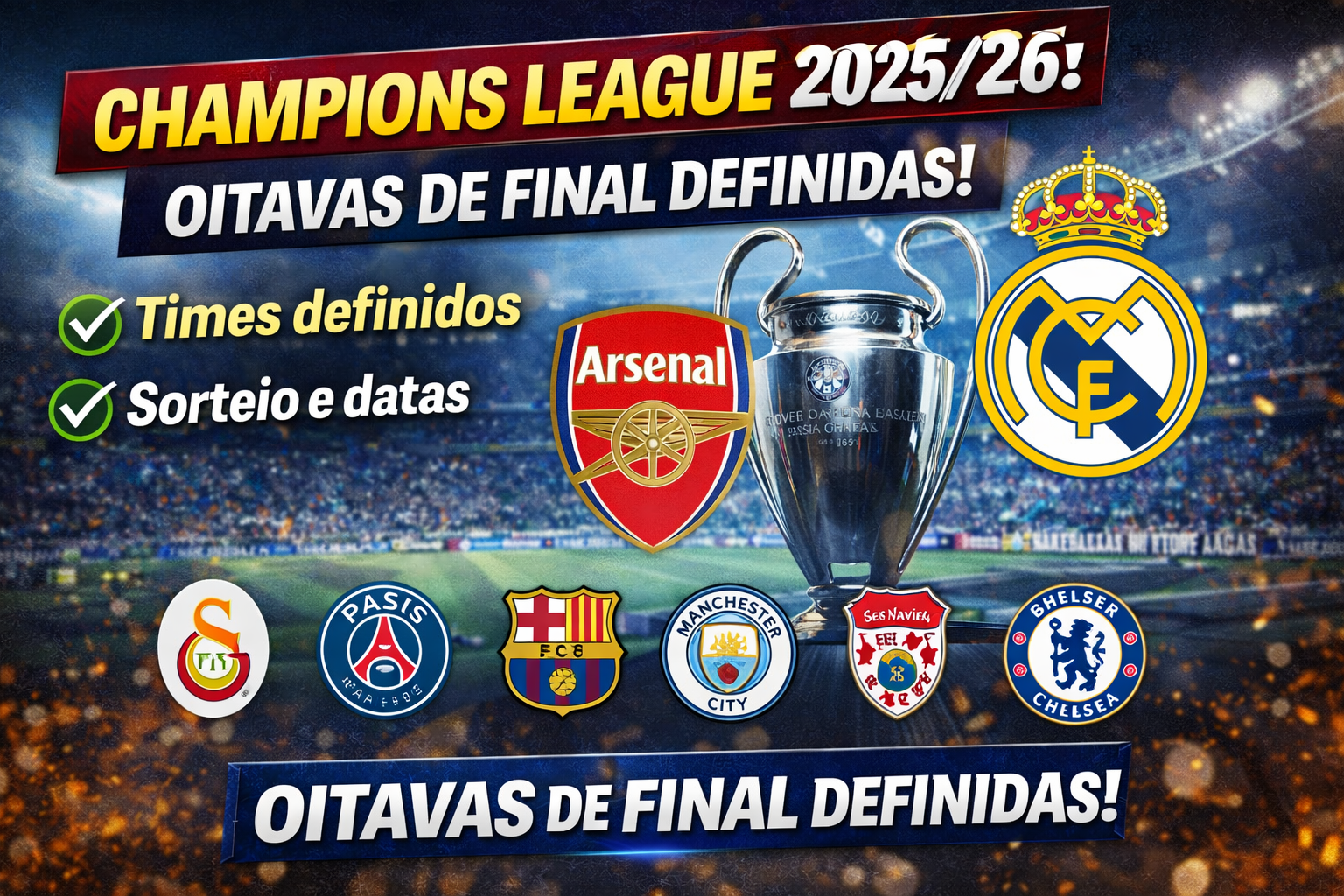 A Champions League 2025/26 entrou oficialmente na fase decisiva. Após o encerramento dos playoffs, restam apenas 16 equipes na briga pelo troféu mais cobiçado do futebol europeu. Agora, os clubes que avançaram diretamente na fase de liga se juntam aos que superaram os 16 avos de final, formando um cenário de alto nível técnico e confrontos imprevisíveis.