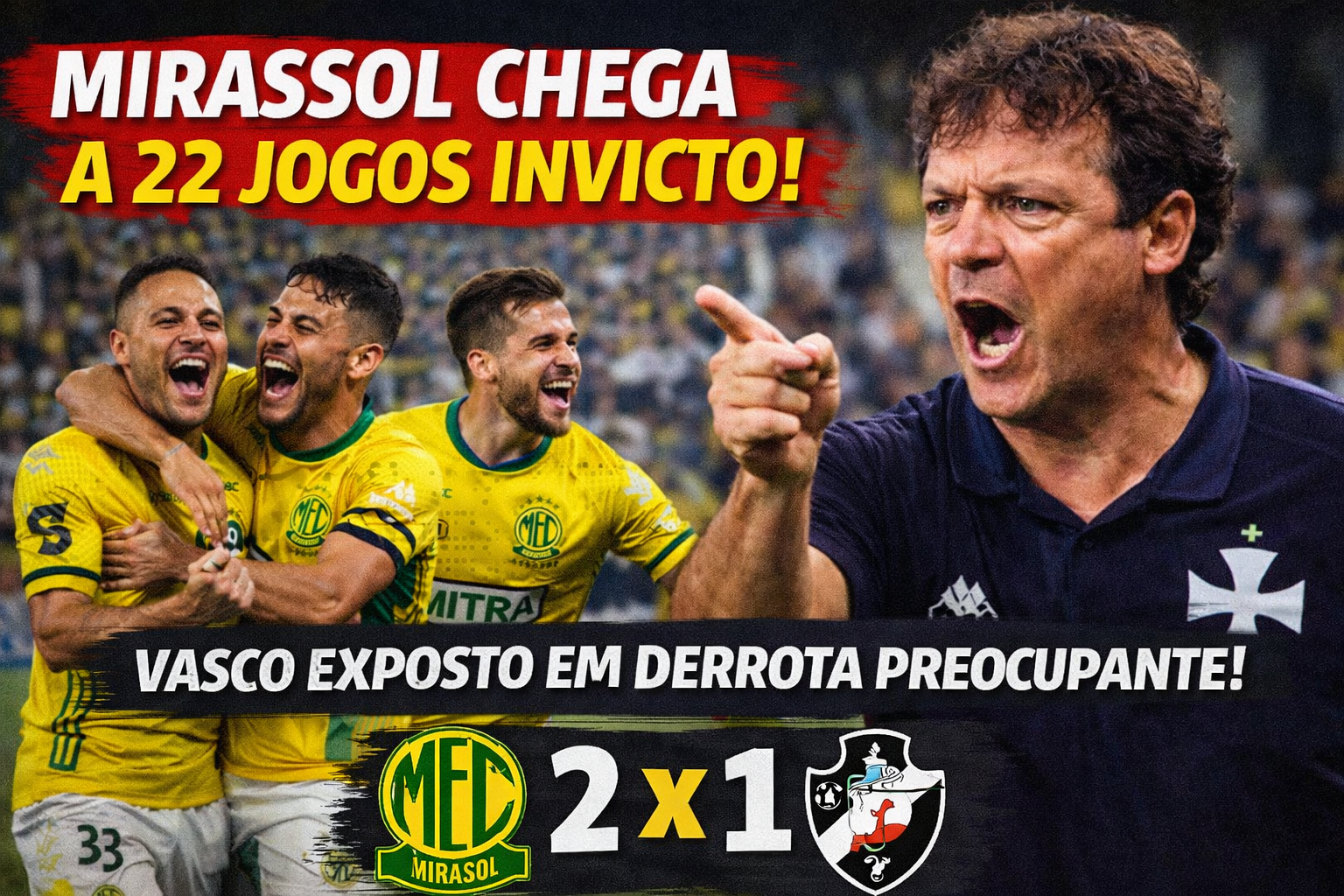 O Mirassol voltou a caminhar pelo gramado do José Maria de Campos Maia carregando um dado que, por si só, impõe respeito: 21 partidas sem perder em casa. Contra o Vasco, esse número não apenas foi preservado como ampliado, chegando a 22 jogos invictos, depois de uma virada construída com organização, paciência e intensidade. Ao mesmo tempo, o duelo revelou limitações estruturais do adversário, especialmente na saída de bola e no controle emocional quando pressionado.