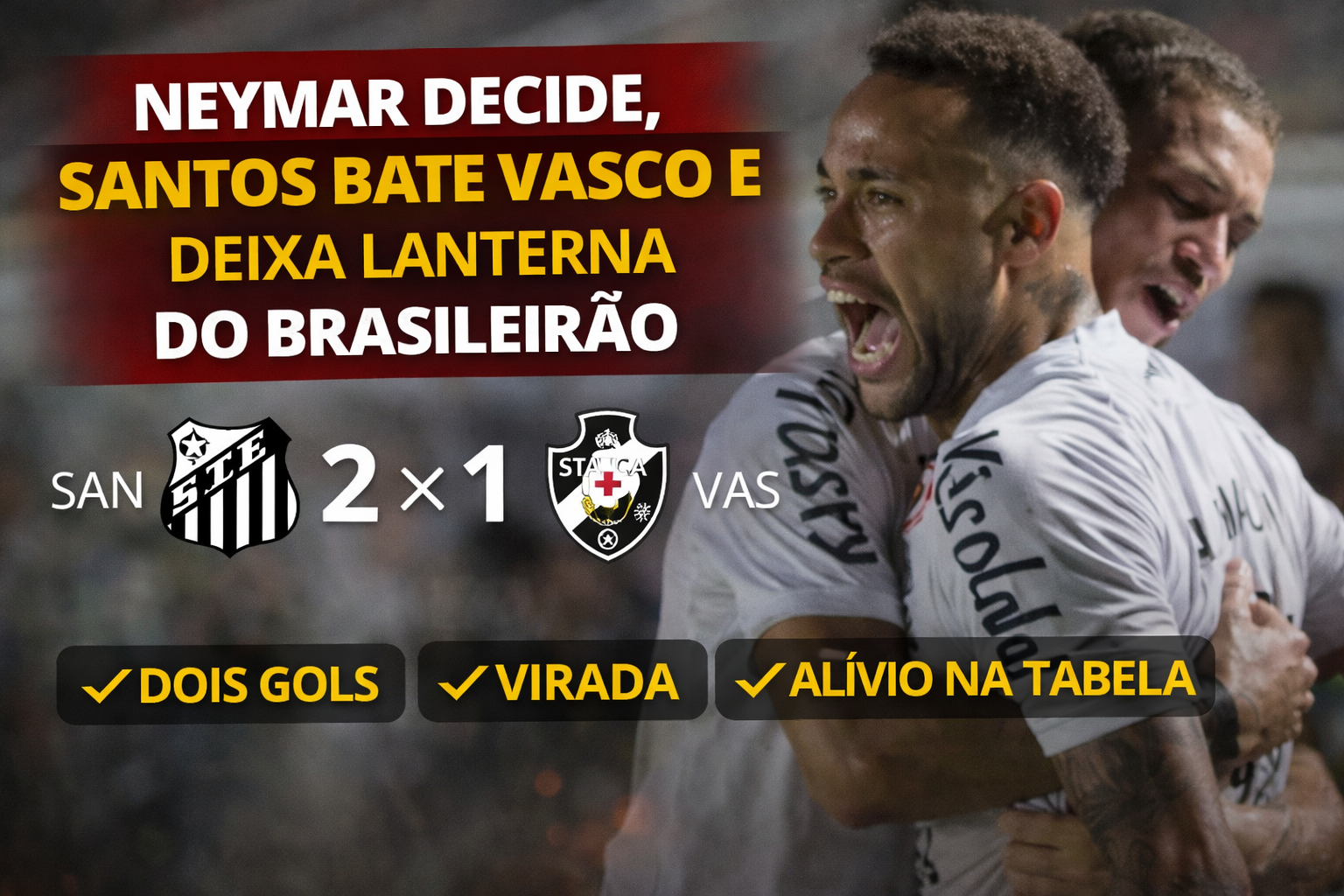 O Santos protagonizou uma noite decisiva no Campeonato Brasileiro. Com atuação dominante de Neymar, o time venceu o Vasco por 2 a 1, conquistou sua primeira vitória e ganhou fôlego na competição. Ao mesmo tempo, o clube carioca permaneceu na última colocação e viu a pressão aumentar.