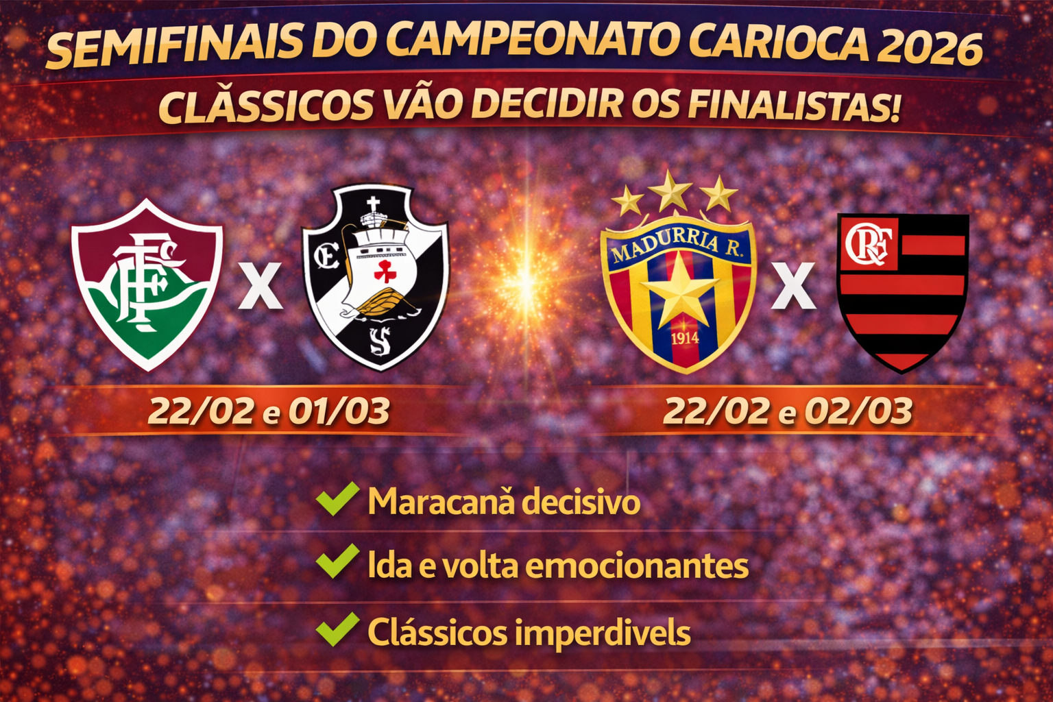 Portanto, as semifinais do Campeonato Carioca 2026 prometem emoção, tensão e grandes jogos. O Maracanã será o palco central de decisões que podem marcar a temporada — e, possivelmente, entrar para a história do futebol carioca.