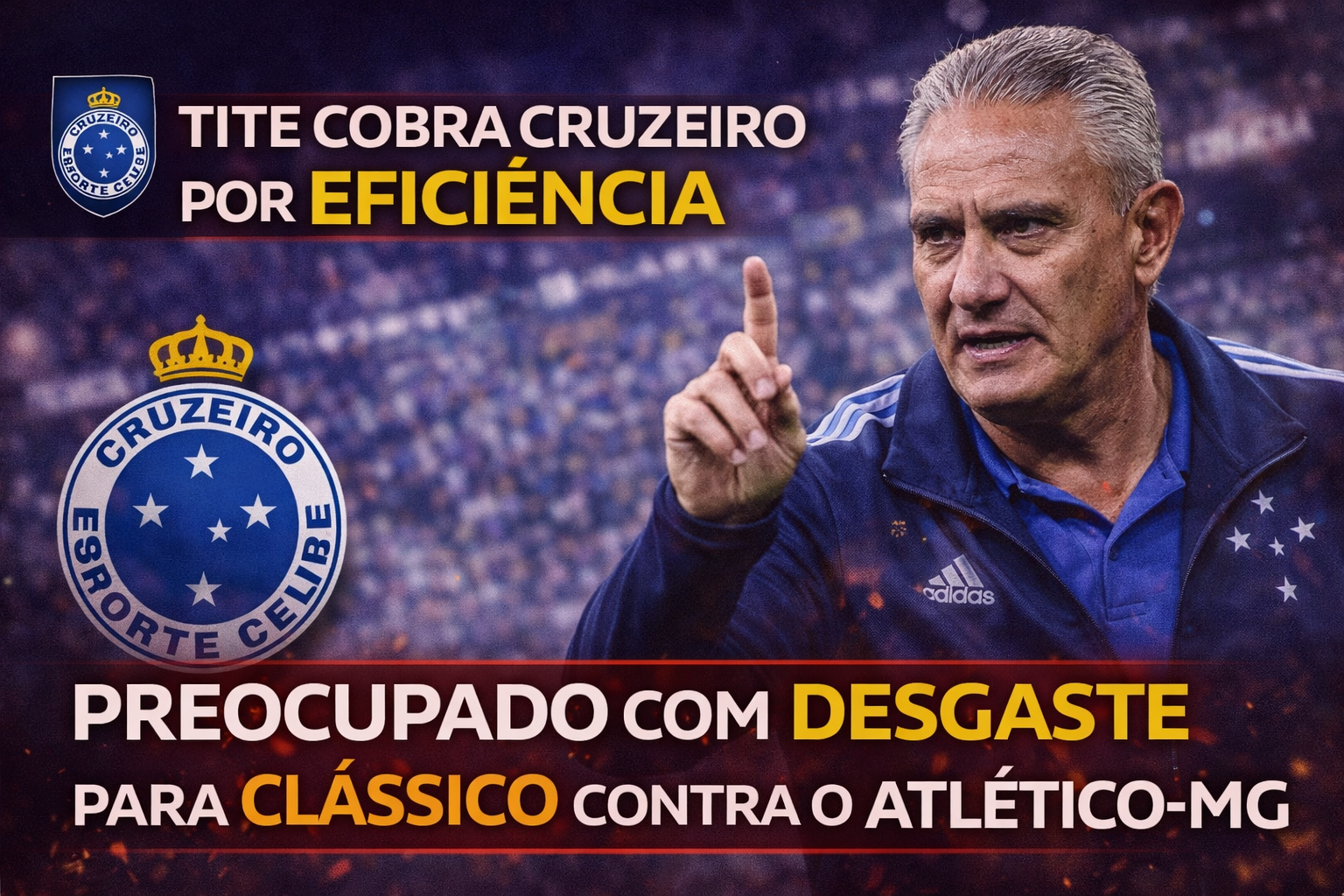 Tite foi direto ao explicar o que incomodou. Para o treinador, o Cruzeiro precisa transformar volume de jogo em gols, sobretudo em partidas equilibradas como a desta rodada do Campeonato Mineiro. Ele também reconheceu que a derrota pesa emocionalmente e afeta a preparação para a sequência de compromissos.